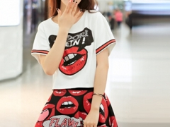 详细信息 2015夏季女装字母嘴唇短袖上衣半身裙两件套连衣裙