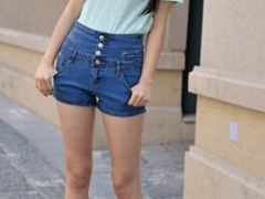 2015牛仔短裤女高腰多扣修身女裤短裤潮女